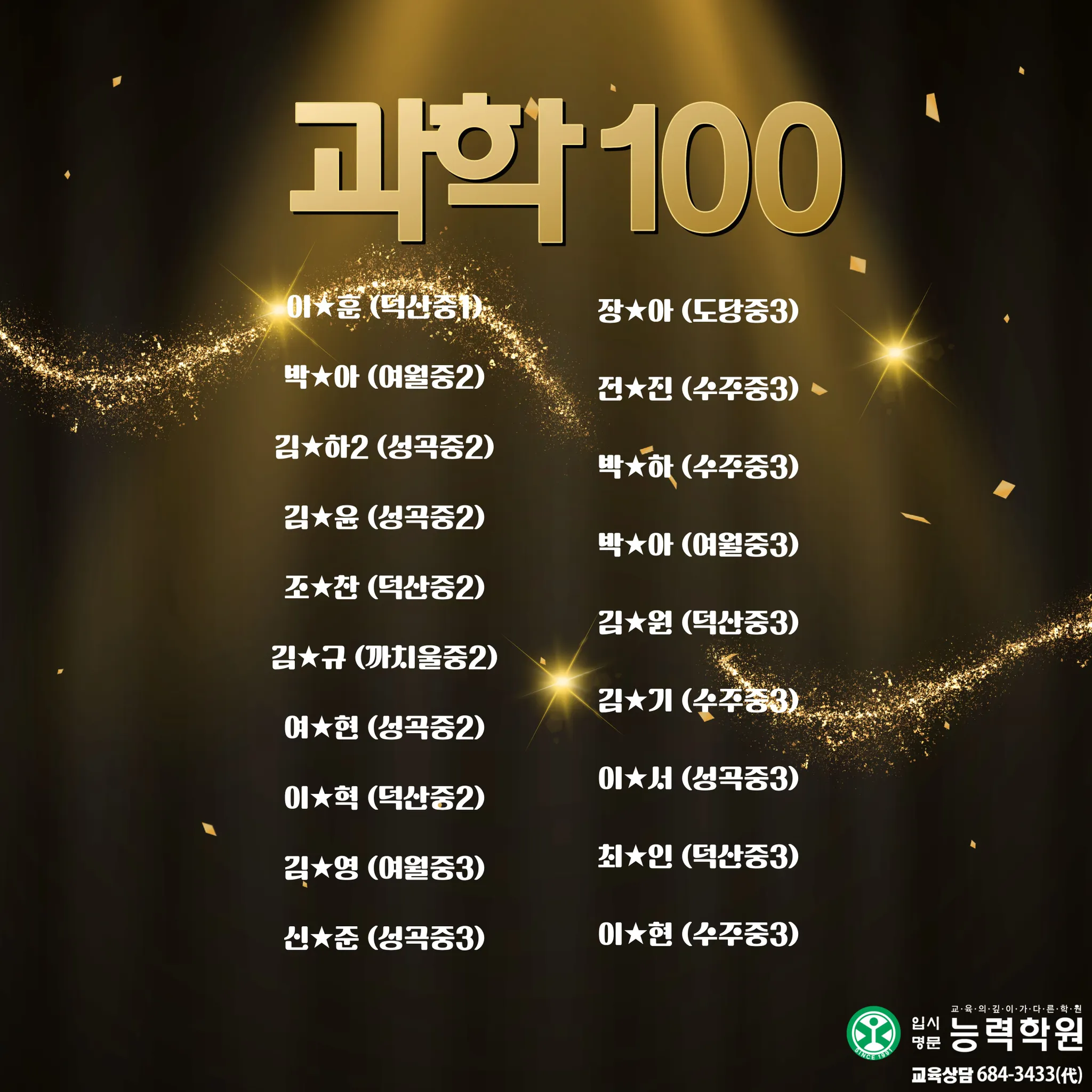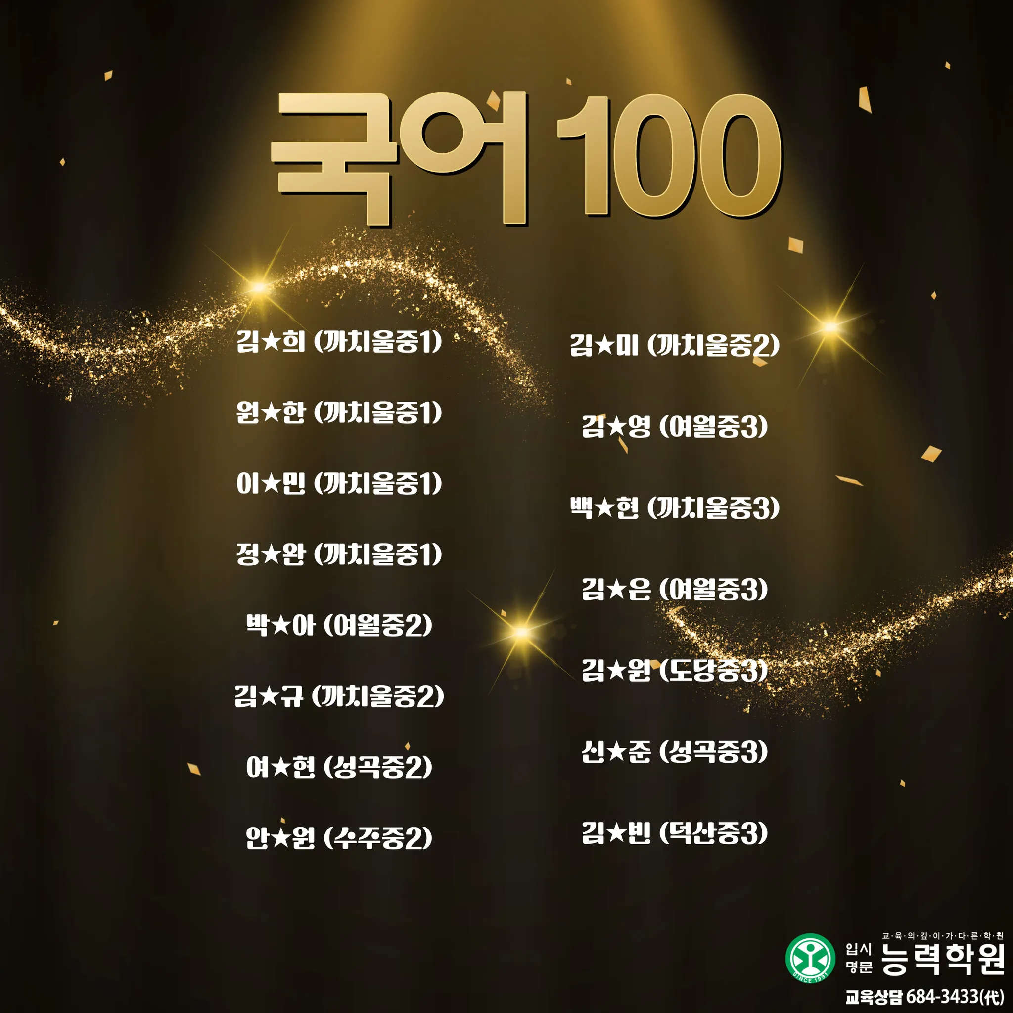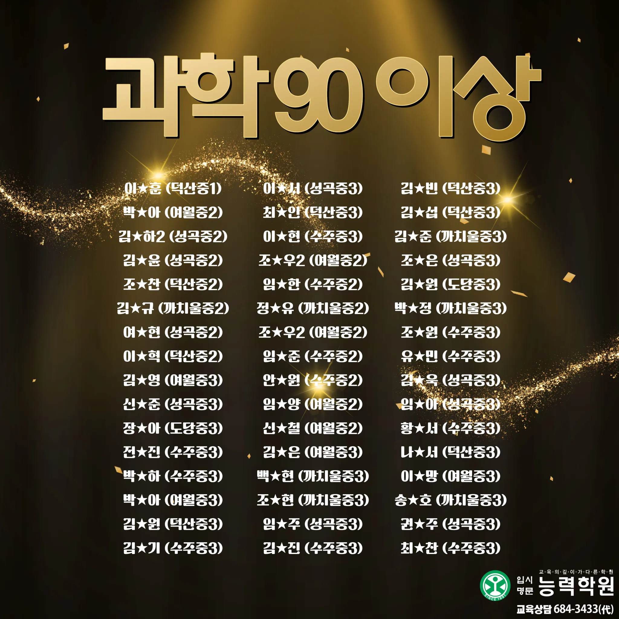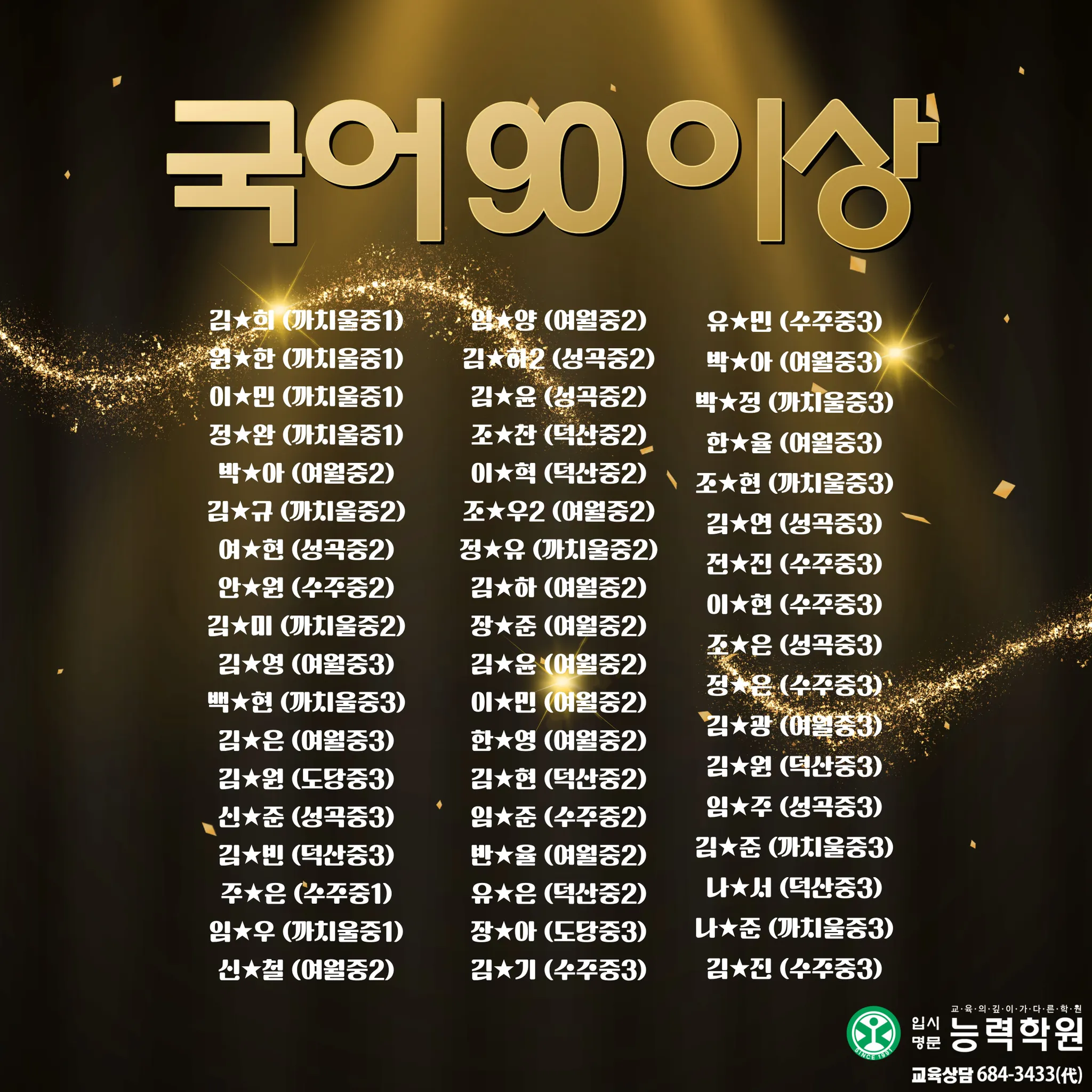 능력학원 중등부에서 2025년 2학기 중등부 실적을 공개합니다. 능력학원은 학년별 전임 선생님과 과목별 전임 선생님이 함께 설계한 관리 시스템으로, 내신의 흐름을 “진도-개념-문풀-오답-서술형-시험 운영”까지 끊김 없이 연결해 학생을 끝까지 끌어올립니다. 여기에 고등관 출신 영어·수학·과학 전임 선생님의 고등 연계 지도까지 더해져, 중등 내신에서 끝나는 학습이 아니라 고입 이후에도 흔들리지 않는 실력의 뼈대를 완성합니다.이번 중등부 기말고사에서도 성적 결과로 증명했습니다. 단순한 문제풀이가 아니라, 시험 범위 분석과 출제 포인트 예측, 취약 단원 집중 보완, 서술형 문장 구조 훈련, 시간 배분까지 실제 시험처럼 훈련하며 최상의 컨디션으로 시험장에 들어가도록 만들었습니다. 그 결과, 중등부 기말고사에서 상위권 성적이 대거 배출되며 “관리형 학원”이 아니라 “결과로 말하는 학원”임을 다시 확인했습니다. 그리고 능력학원의 경쟁력은 중등부에서 끝나지 않습니다. 대입에서도 압도적인 실적으로 오정구 1위를 기록했습니다. 서울대 1명, 연세대 3명, 고려대 2명, 서강대 3명, 성균관대 3명, 한양대 5명 합격이라는 결과는 우연이 아니라, 내신과 수능을 분리하지 않고 장기 로드맵으로 설계해온 능력학원 시스템의 증거입니다. 중등부터 고등, 그리고 대입까지 ‘한 번에’ 연결되는 학습 설계와 밀착 관리로, 학생의 성적과 진학을 끝까지 책임지겠습니다.초등에서 대입까지 All in One!