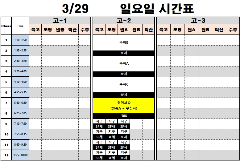고등부 시간표